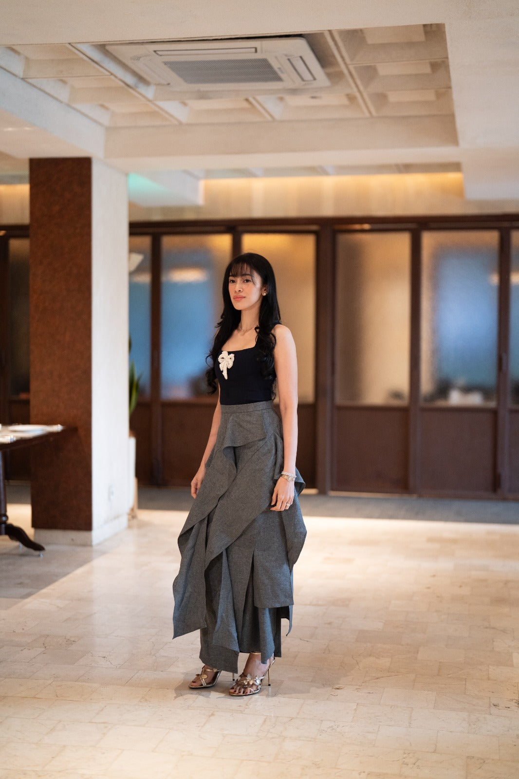 Designed with layered drape details that create a beautiful silhouette reminiscent of rose petals — flowy, feminine, yet effortlessly wearable. The cut falls neatly and instantly elevates your look, giving you a polished appearance without extra effort.