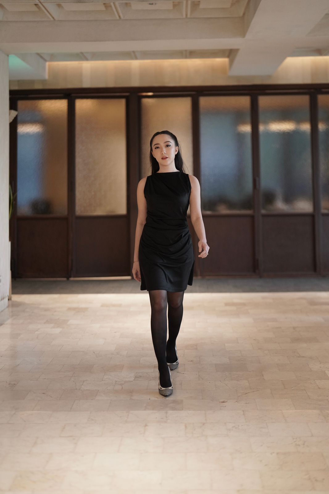 The draped accent around the waist is thoughtfully designed to follow your natural curves, helping to create a slimmer silhouette while subtly camouflaging the midsection. It shapes the body beautifully without feeling tight, ensuring comfort throughout the day.