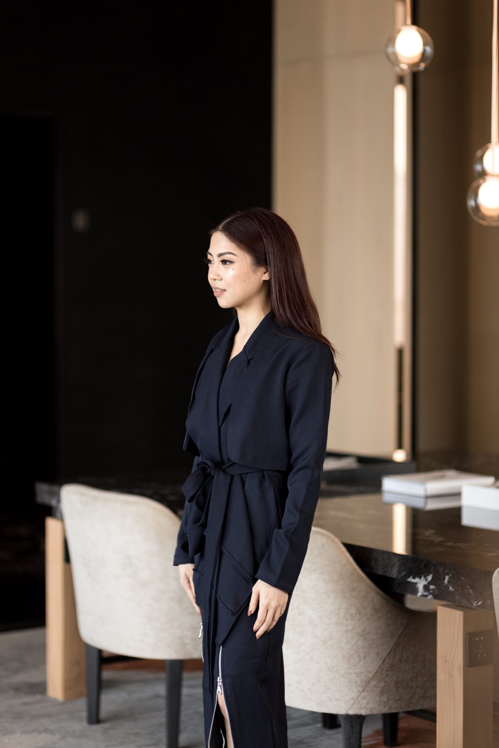 This set features a sleeveless inner kimono wrap design paired with a long-sleeved cropped outer. Crafted from premium materials, it ensures a polished look with a structured feel while maintaining all-day comfort.